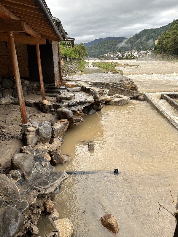 離れた場所にある「巌窟の湯」は、完全に泥水で浸水し、水が引いた後もしばらくは入れない状態でした。