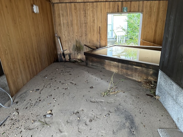 大浴場は全て濁流で飲み込まれておりましたので、ほとんどのものを廃棄するしかありません。もういっそ、露天風呂をなくしてしまったほうがいいのではと真剣に悩みました。