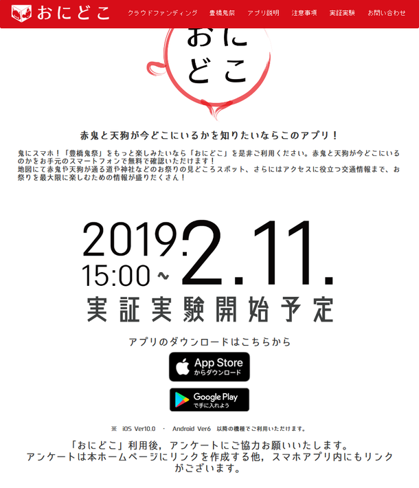 ダウンロードは「おにどこホームページ」からApp Store(iOS用)もしくはGoogle Play(Android用)のバナーをクリックしたリンク先から行なうことができます!