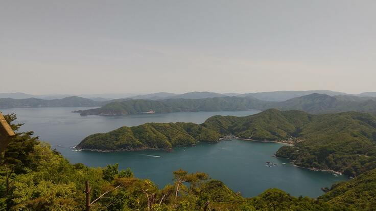 無料のエンゼルライン展望台(冬季閉鎖)からリアス式海岸である若狭湾を一望