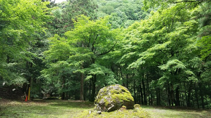 どの寺社も自然豊か。深山飯盛寺には龍が蹴ったと言われる昇龍岩があります。