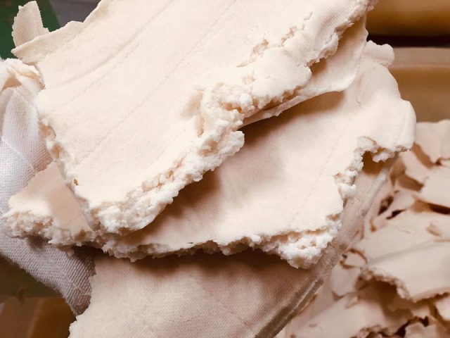 お酒を酒袋に入れ、槽の中に重ねていき、