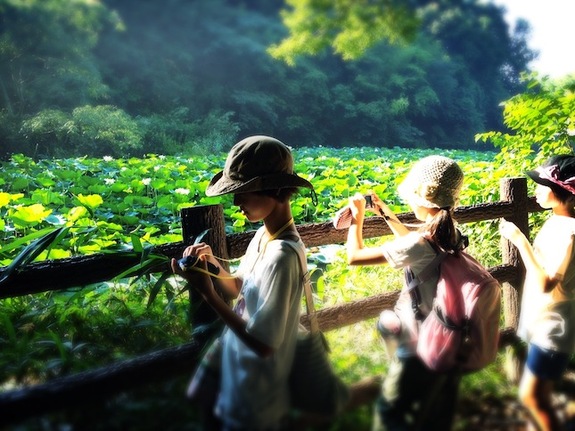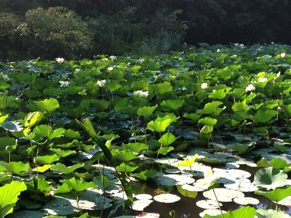 石上神宮から山の辺の道に入るとすぐに、蓮の花が咲く池がでてきました。