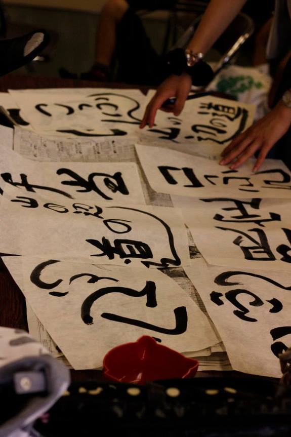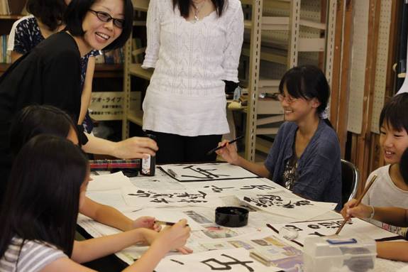 応援せんせい「くず上」先生による書の手ほどきをうけて