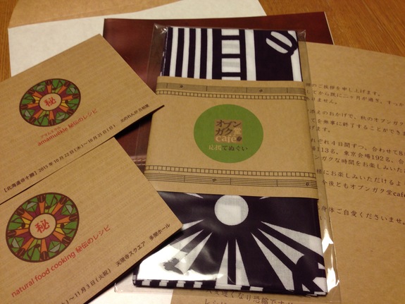 そして、大変遅くなり恐縮ですが、本日、お待たせいたしておりました10000円の引換券のお品物(「特製オヤツの秘伝レシピ」「オリジナル手ぬぐい」)を発送させていただきました!当日の様子を少しでも感じていただけたら幸いです。