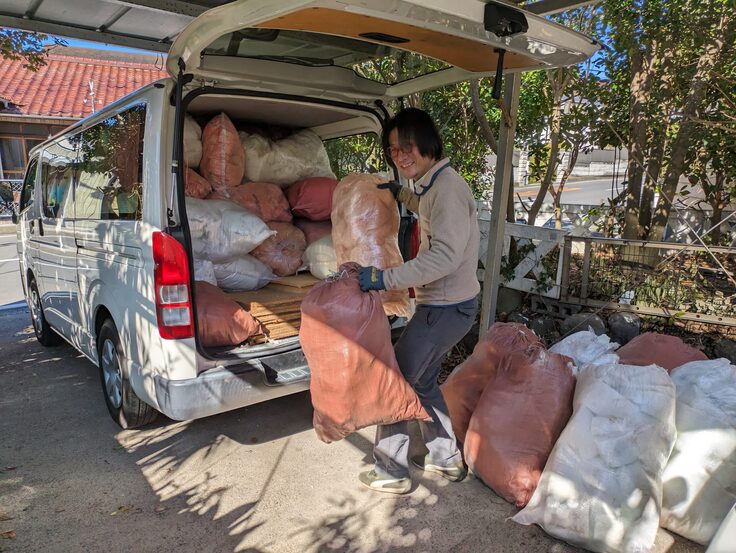 断熱材を運び込んで頂いた、建築士のつむつむ。