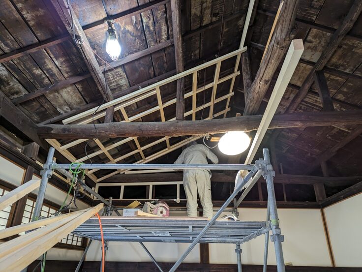 春休み中に畳部屋の天井を終えて、床を板張りにする作業にとりかかる予定。