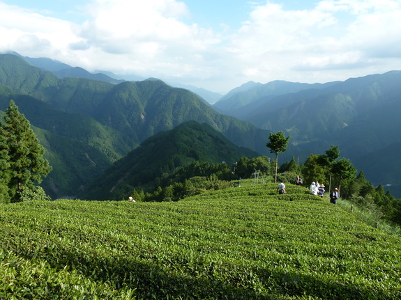 (静岡県の山間地 急こう配での新茶2014の茶摘み)