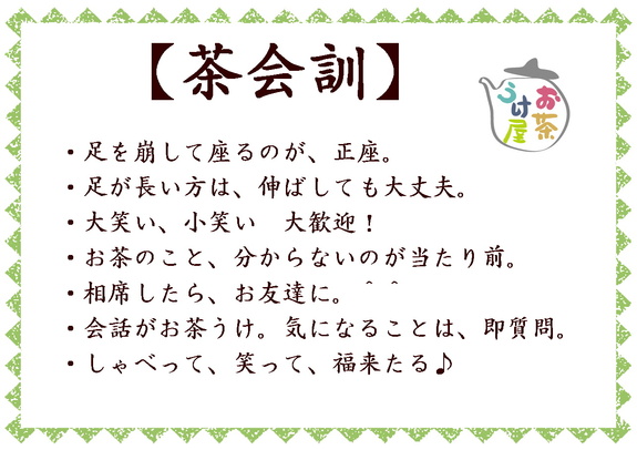 かしこまったりしたくなるので、こんな茶会訓を作りました。