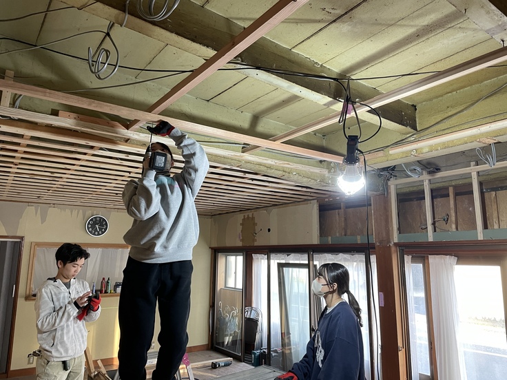 午後からは天井の下地作りの作業も手伝ってもらいました!