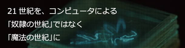 21世紀は、リアルとバーチャルの対比が、コンピュータによって踏み越えられ、作り替えられる世界になります。今まで映像の中でしか見られなかった事柄が、物質世界に飛び出し体感されるような時代を「魔法の世紀」と僕は呼んでいます。