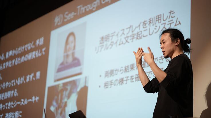 普段は,ろう・難聴者(聴覚障害者)向けアクセシビリティに関する研究を行っております.具体的には,陸上競技短距離走におけるスタート合図を触覚提示するシステム HaptStarter,透明ディスプレイに話した言葉が文字として表示するシステム See-Through Captions,話しかけたい人に空気渦輪で呼びかけるシステム Air Talk-Starterと,幅広く主著・共著として取り組みながら,ユニバーサルデザインやアクセシビリティ,ダイバーシティとの関係性について考えています.