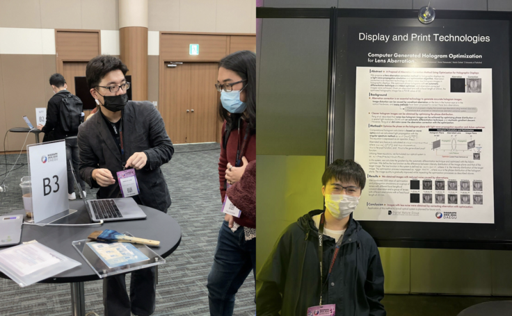 私はこの研究のポスター発表のため、SIGGRAPH Asia 2022に参加しました(当時は学部2年生で海外に行くのも初めてでした)。初めての学会発表が国際学会で提出から渡航までもいろいろ大変でしたが、ポスター発表は基本的に1対1の発表で複数回発表することができるため発表中にも発表を向上させていくことができ、非常に良い訓練になりました。また、始めの方の発表では不慣れで英語に詰まったりするなどあまり上手に発表することはできなかったのですが、それでも暖かく発表を聞いて、質問を頂けたので安心して発表することができました。