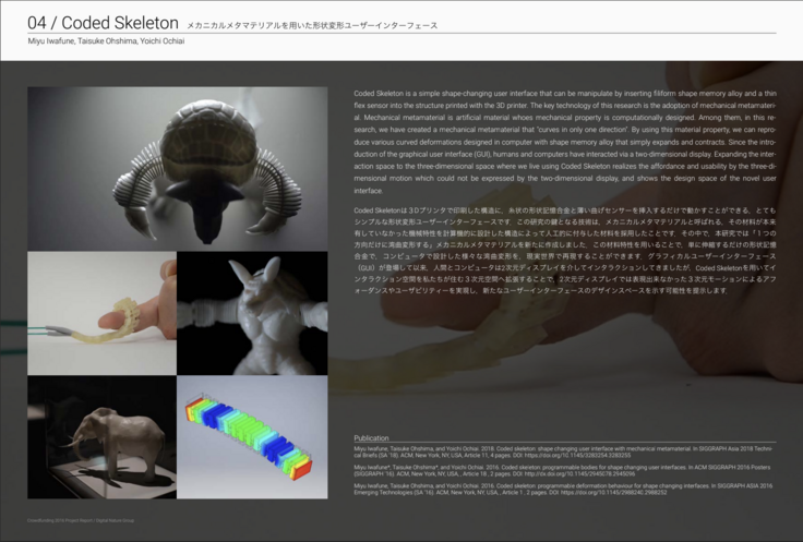 この挑戦に対し、267名の支援者の皆さまから総額11,635,000円もの温かいご支援を賜り、心より感謝申し上げます。いただいた資金は、学部生・修士学生たちによる意欲的な研究プロジェクトの推進、デジタルネイチャー開発研究センターの公式ウェブサイト(日本語・英語)の立ち上げ、そして支援者の皆さまへの感謝をお伝えするためのリターン実施費用として、大切に活用させていただきました。