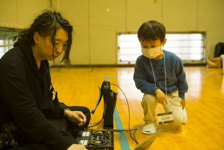 弱視者の方でも楽しめるように考案された、ドローンを使った新しい球技「Drone Badminton」を体験していただきました。「学校にも置いてほしい!」といった嬉しい声もいただきました。また、関連するアクセシビリティ研究として、聴覚情報を視覚化する「See-Through Captions」などの実演も行いました。会場では落合先生がDJとして場を盛り上げる一幕もありました!