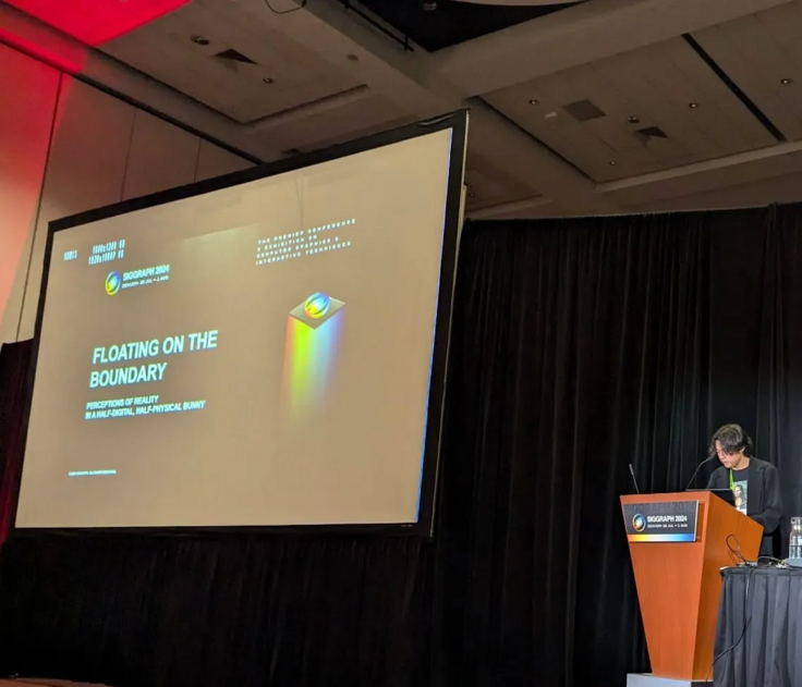 - Floating on the Boundary: 横山さん(M2)がArt Paper部門で発表。裸眼3Dディスプレイと現実のフィギュア(ウサギの上半身が現実、下半身がCG)を組み合わせ、現実とデジタルの境界に存在するような視覚体験と、それがもたらすリアリティについて発表しました。