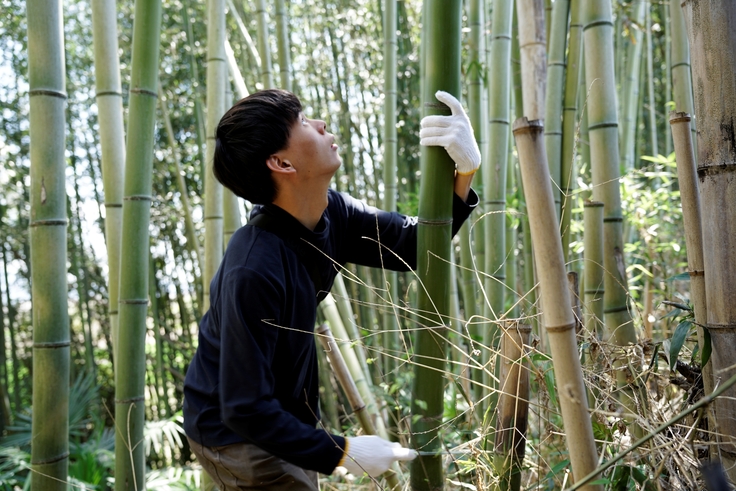 また竹林では、その環境からお茶の葉が生えてくることがあり、植生の共存関係を垣間見ることができる。