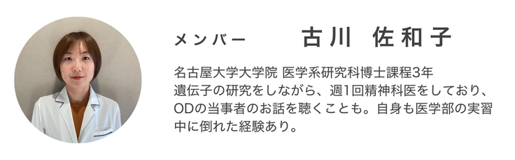 本活動を通じて、OD当事者の治療環境を少しでも良くしたいです。