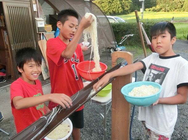 《合宿での流しそうめん》