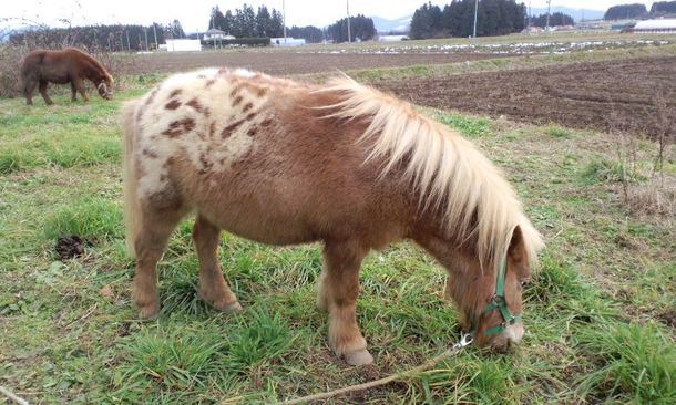 この2頭(ピクニック&ララ)が、元々南相馬のポニー牧場で飼われていたポニーです。青草が大好きです。