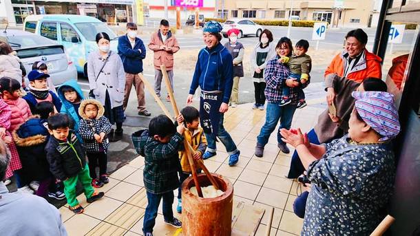 また、インドアパークは37Cafe@Parkという子育て応援カフェとして乳幼児を持つ親が時間を気にせずゆっくり過ごせたり、年間50回ものワークショップが開催される場所としてたくさんの子どもたちやその親が集まっています。(写真は1/13に開催の餅つき大会のものです。)