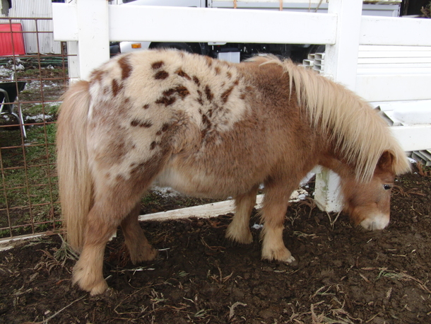 しかもコハクの馬体をご覧頂けるとおわかりになるかと思いますが、琥珀の模様のように体毛が生えているのです。