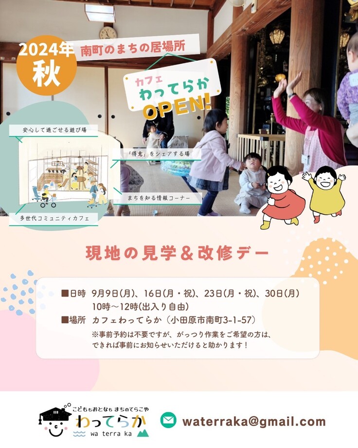 <9月の毎週月曜開催>「カフェわってらか」見学&改修デー