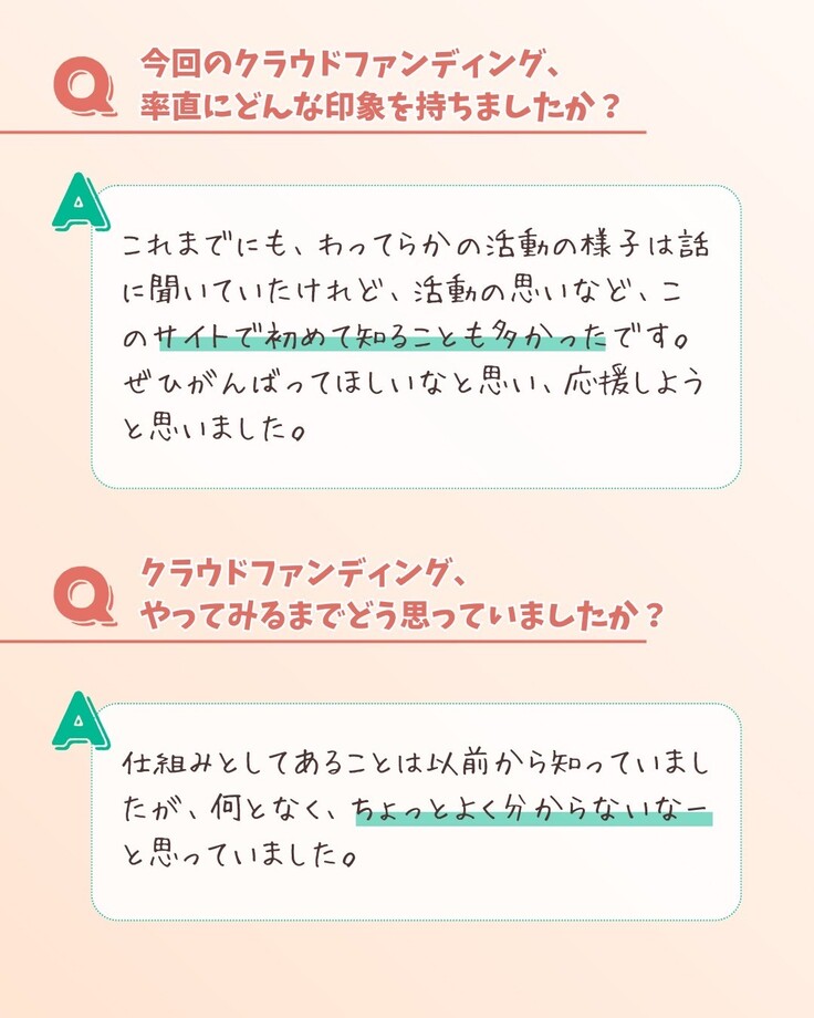 今回初めてクラウドファンディングで支援した、という方に、どうだったかお聞きしてみました!