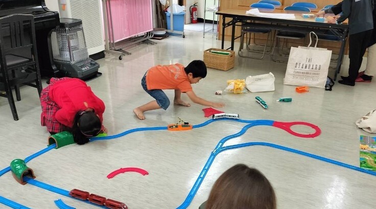 「あそび場」では、おままごとグッズや、電車、ミニカー、ベビー用グッズなど、寄付のおもちゃが多く活躍しています!