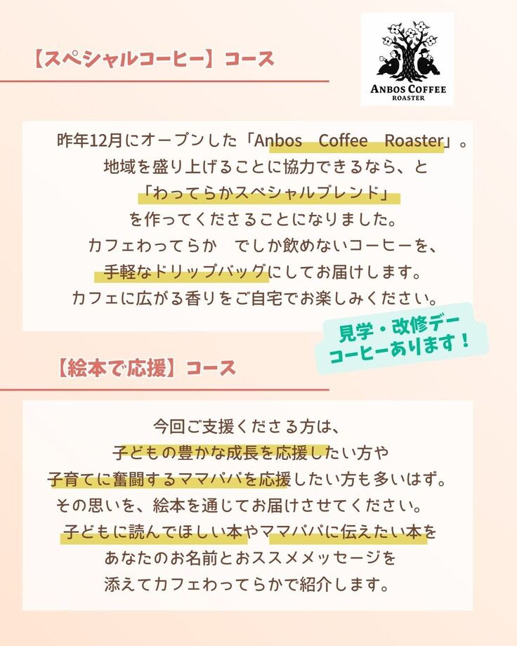 「カフェわってらか」を応援くださる皆さまの思いをありがたくいただき、私たちとのつながりを感じていただけるものになるようにしたい!と考えてご用意いたしました。