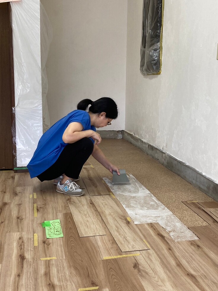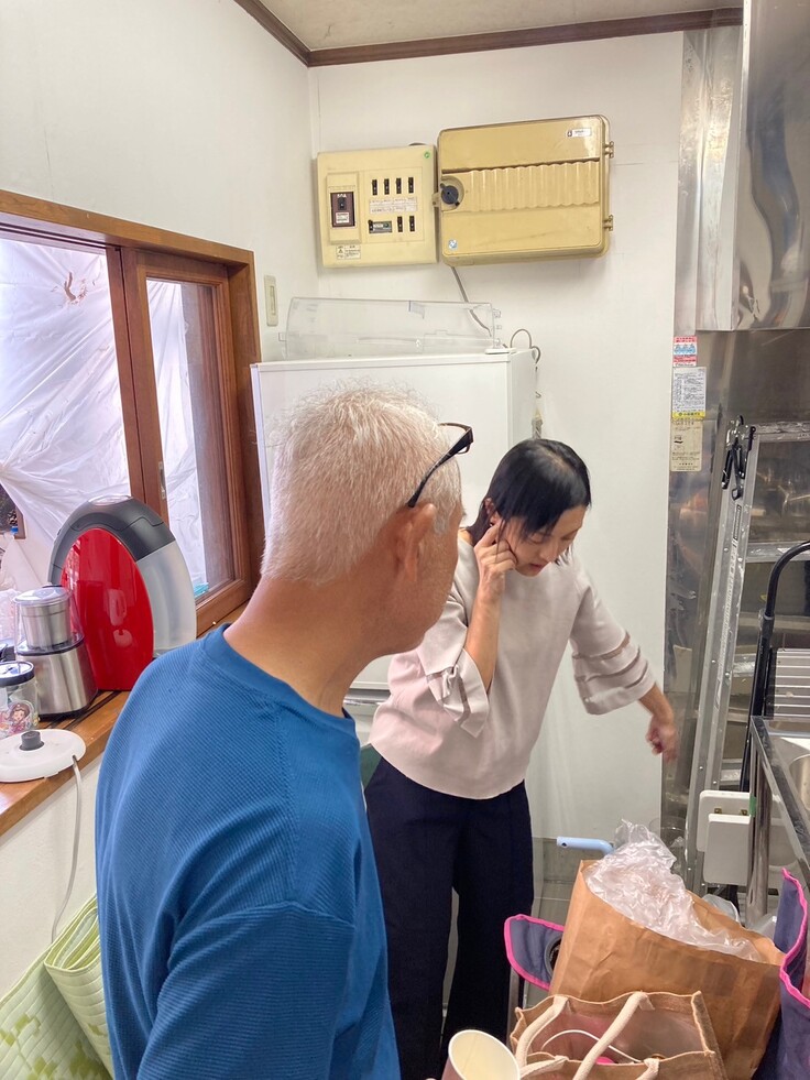 床貼り作業は今日も黙々と進み、近所の方も来てくれて台所づくりのアドバイス。