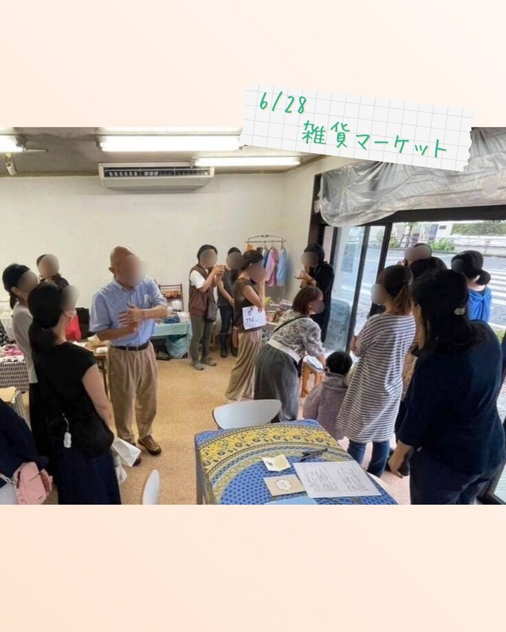 6月28日には、改修中のカフェわってらかで「雑貨マーケット」を開催し、