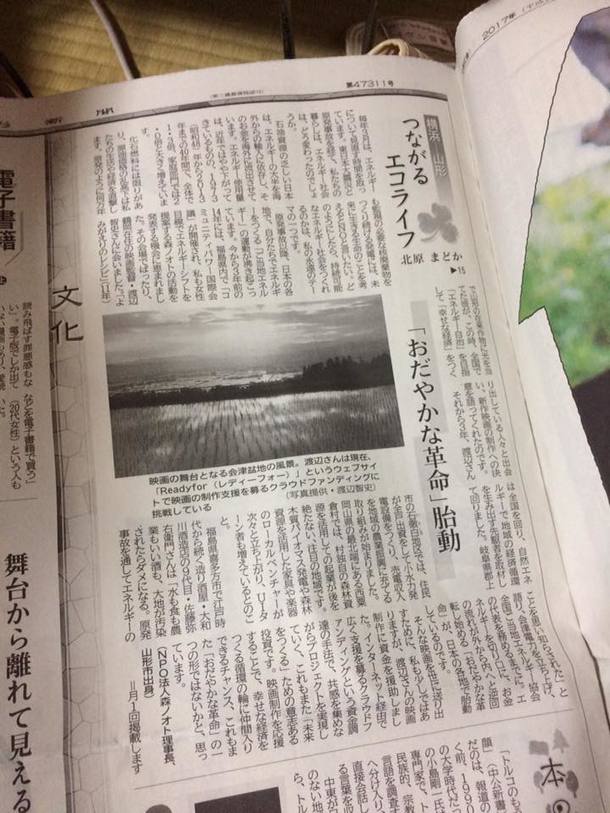 山形新聞に「おだやかな革命」の記事が掲載されました!