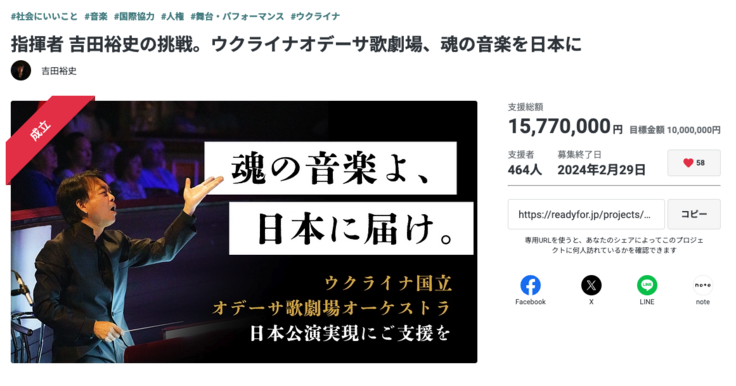 フルオーケストラの実現に向けて目指していた2,000万円には惜しくも届きませんでしたが、より理想的な形で公演を実現するために、このファンドを大切に活用させていただく所存です。