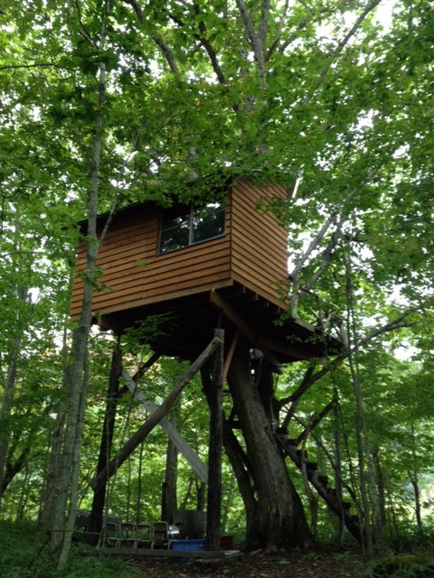 (森の中に作ったツリーハウスは、毎年宿泊の予約が