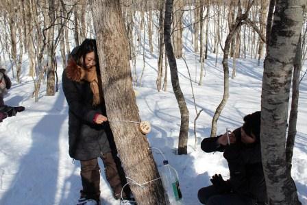 (カエデ樹液の採集体験会の様子)
