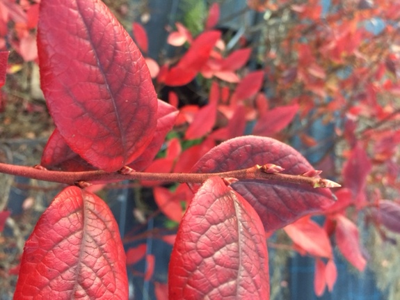 畑には約60種類ものブルーベリーがあります。もちろん、主力としては15~6種類のブルーベリーが多いのですが、紅葉もブルーベリーの種類が違うと色もちがうんですよ!