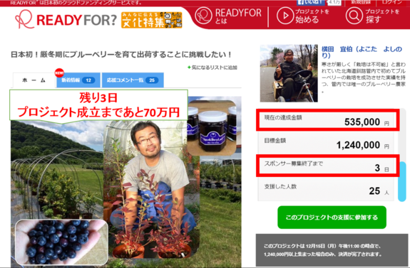 日本初!厳冬期にブルーベリーを育て出荷することに挑戦したい!