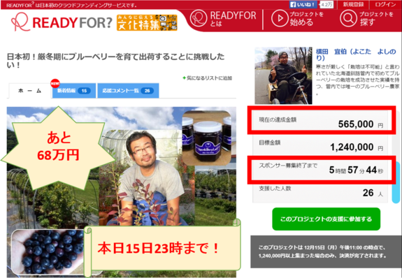 日本初!厳冬期にブルーベリーを育て出荷することに挑戦したい!