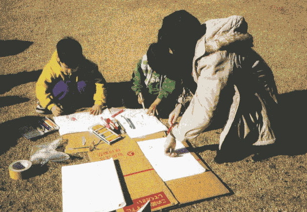 このとき、子どもの心のケアが叫ばれ、子どもに関わる様々な人たちが様々なことを試みました。その一つが私たちの原点である「おえかきやさん」です。