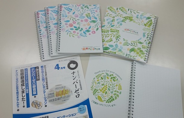 また、5000円、10000円(個人向け)を選んでくださった皆様には、オリジナルノートを同封いたしました。