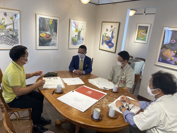 消防、保健所からの提案を基に出来上がった図面と工事、設備への打ち合わせ。