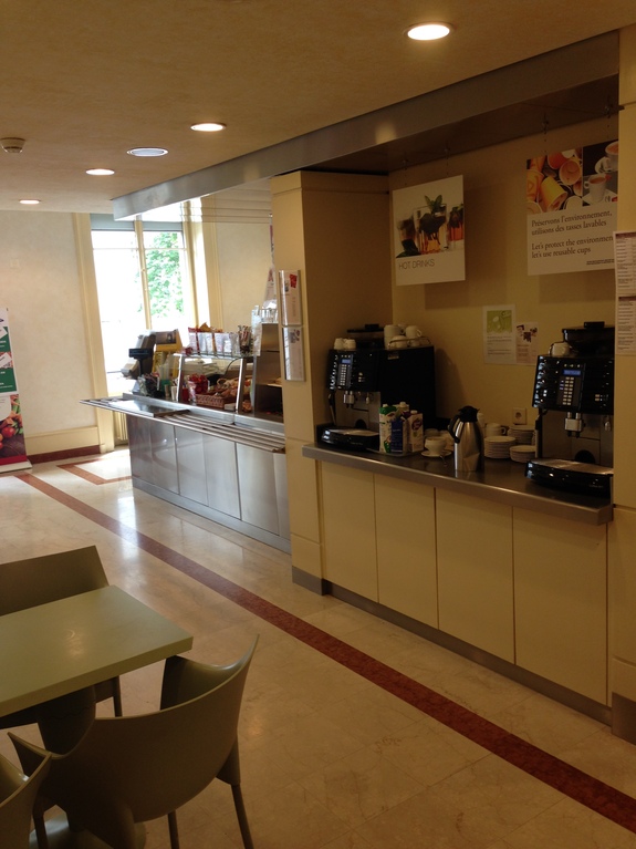 国連内のカフェテリア。ペットボトルの水1本400円以上。