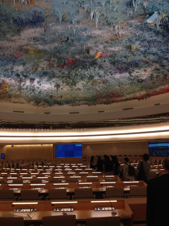 しかしこの後、日本政府が反論の答弁を行ってきたので、ただちにその場で再反論の文書を、私とエセックス大学の藤田早苗さんと一緒に起案して、海渡先生と一緒に委員に手渡しました。結構大変でした・・・。