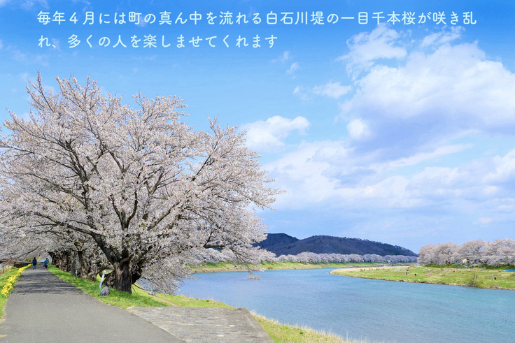 大河原町は、宮城県の南部に位置する面積が約25㎢、人口約23,600人の小さな町ですが、町の真ん中を白石川が流れその両岸の堤防にはお隣の柴田町「船岡城址公園」とともに日本桜の名所百選にも選ばれている「一目千本桜」がございます。春には蔵王山を背景とした一目千本桜が咲き乱れ、その景観は大河原町が全国に誇れる宝物であり多くの観光客が訪れる町です。(出典元:https://www.town.ogawara.miyagi.jp/)