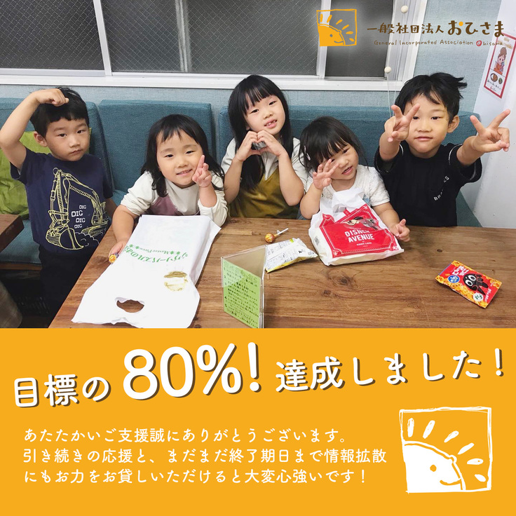 皆様からのあたたかいご支援により、目標金額の80%を達成いたしました!