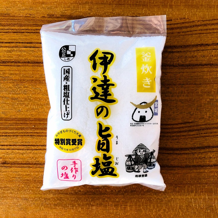 塩は、山田油業さんの伊達の旨塩を使用しています。伊達の旨塩は、“みやぎものづくり大賞特別賞”を受賞した手づくりのミネラル塩で、山田油業のご夫婦が石巻・万石浦の海水を2日かけてじっくり煮詰め、精製されています。