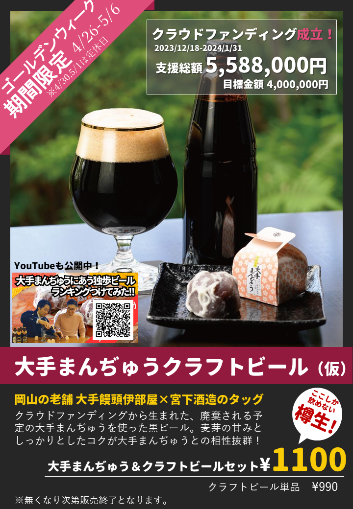 大手まんぢゅうを使った世界にひとつだけのビールへと仕上げて参るためにも、引き続き私どもの挑戦にご支援を賜りますようお願い申し上げます。