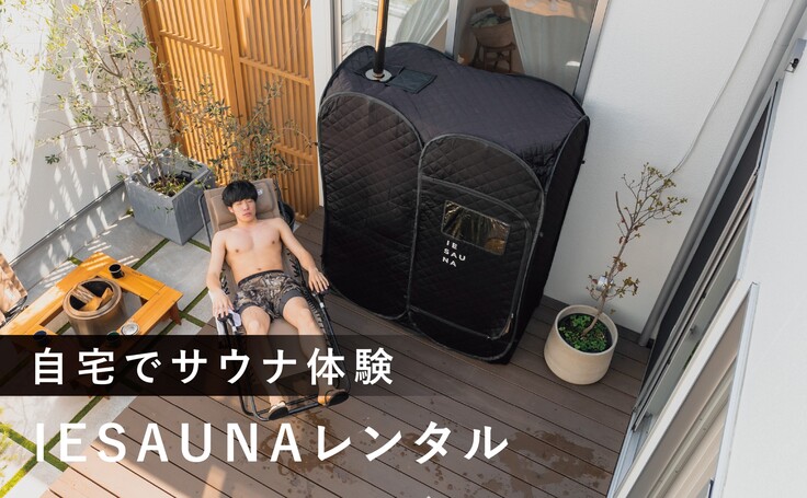 ベランダやバルコニーでお使いいただける、工事不要の家庭用テントサウナ「IESAUNA」を1週間貸し出します。(燃料5リットル×2本分つき)