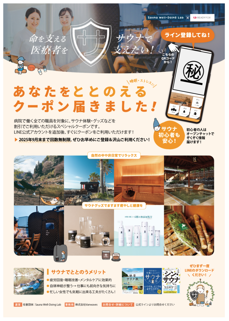 命を支える医療者をサウナで支えるプロジェクトへのご協力感謝致します。
